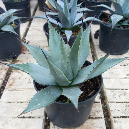 Die Agave Havardiana stammt aus dem felsigen Gebieten in West Texas und Nordmexiko, in Höhenlagen von 1000 bis 2000 mtr. Diese Agave hat dicke silbergraue Blätter mit Zähnen und einem scharfen Endstachel. Einzelne Pflanzen erreichen eine Größe von 90 cm hoch und 120 cm breit. Sie ist frostsicher bis -18°C.