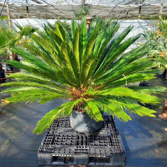 The Cycas revoluta is a palm fern and is also called the False sago palm. This palm fern also grows particularly well in our climate, despite its very slow growth.