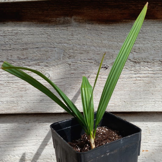 Diese schmale Fächerpalme bildet einen Stamm, der nah am Boden bleibt.