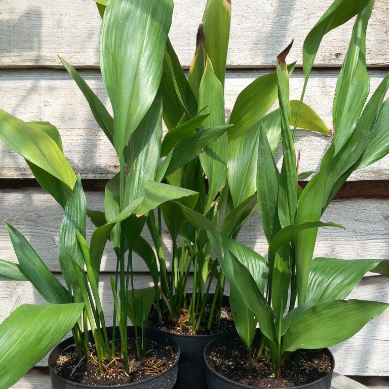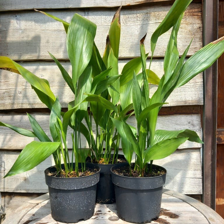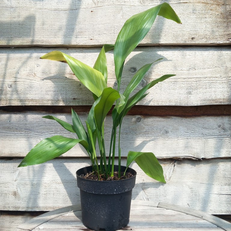 Aspidistra elatior wird auch Schuster- oder Metzgerpalme genannt. Diese ursprünglich aus dem Himalaya stammende Blattpflanze ist sehr stark und eignet sich hervorragend als Zimmerpflanze. Diese Zimmerpflanze wird bis zu 70 cm hoch, kann aber auch auf der Terrasse platziert werden.